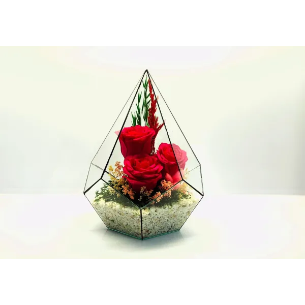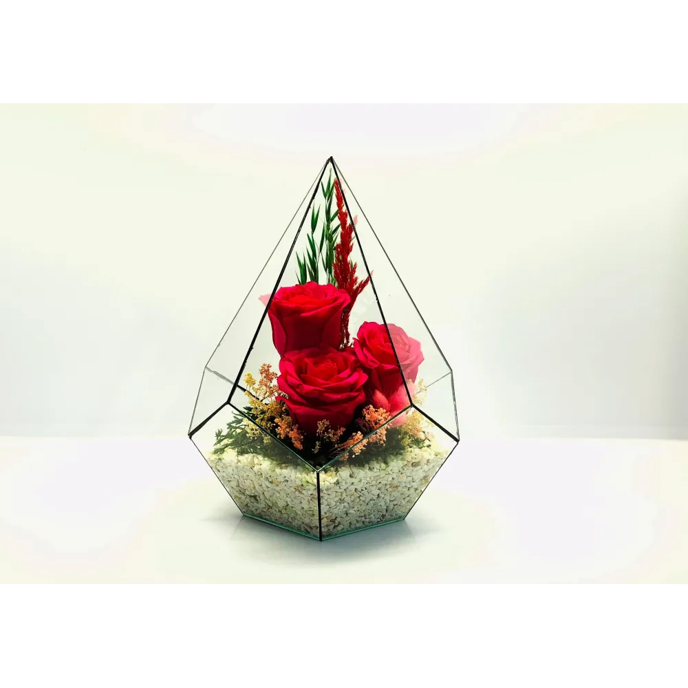 باکس شیشه ای اشکی با گل رز جاودان - هدیه ای عاشقانه و ماندگار